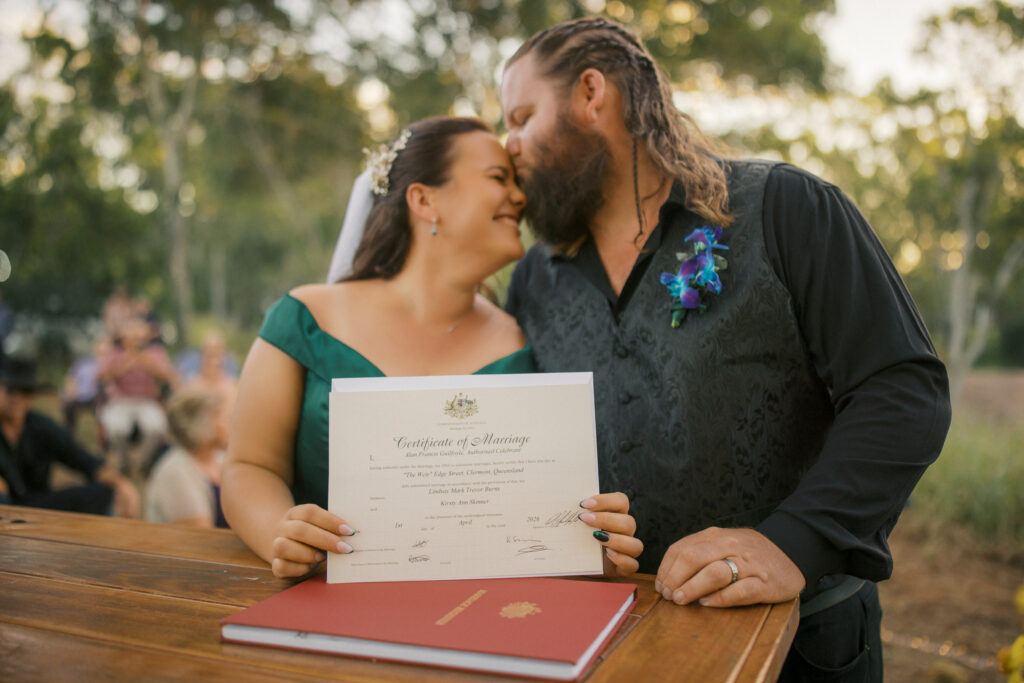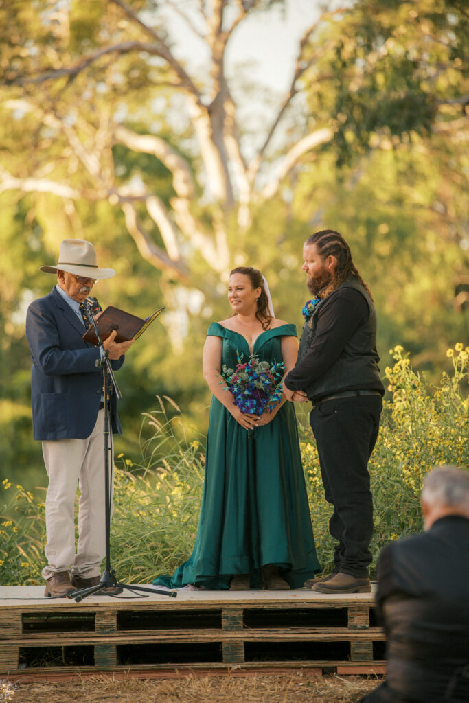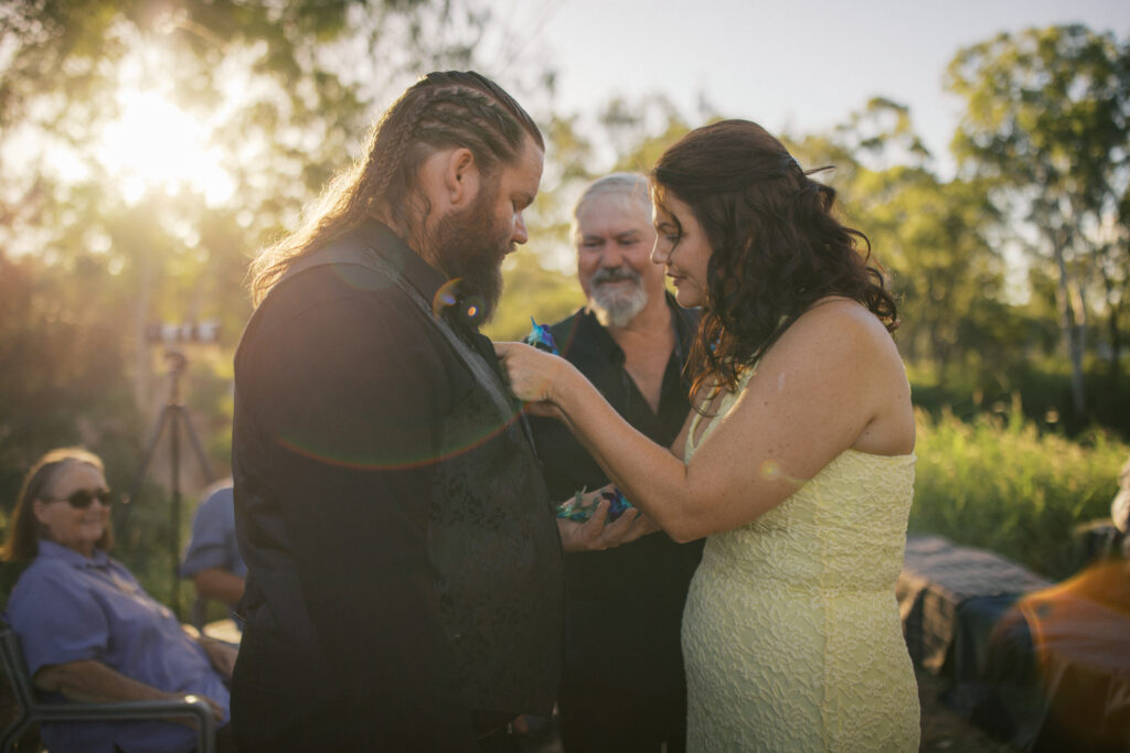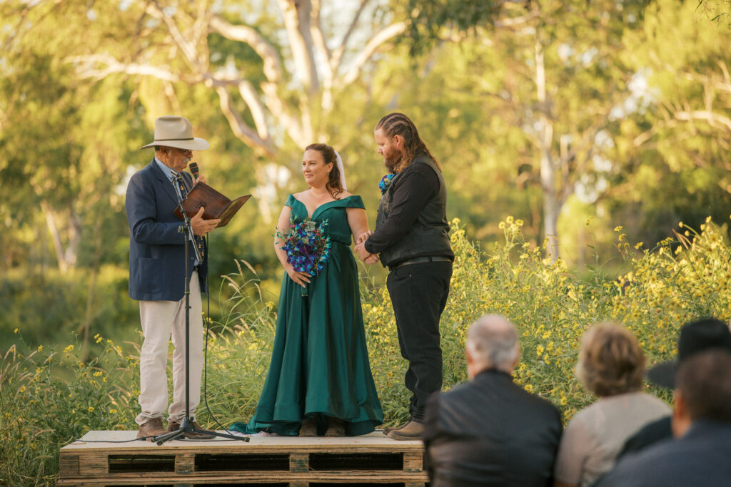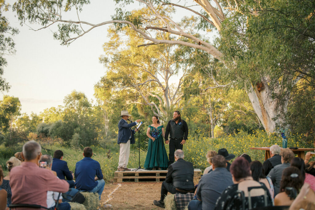 They said their vows on the bank of the weir, under the gum trees, just as the sun started to drop.